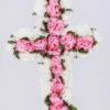 Στεφάνι σταυρός με μώβ τριαντάφυλλα