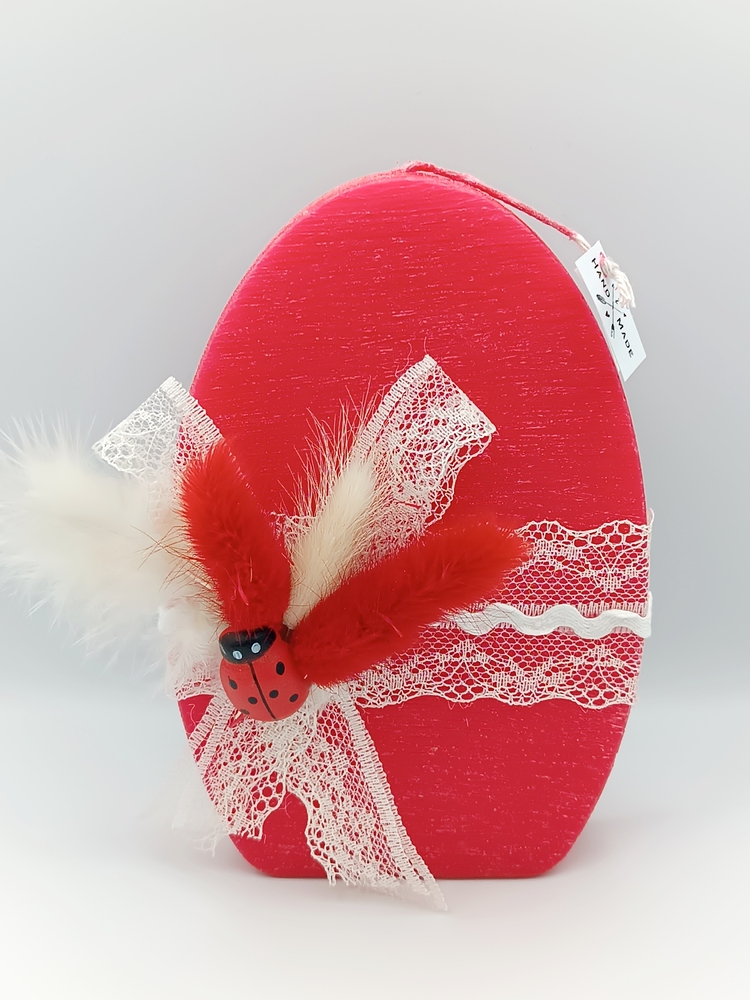 Κέρινο αυγό κόκκινο πλακέ με λουλούδια και πασχαλίτσα
