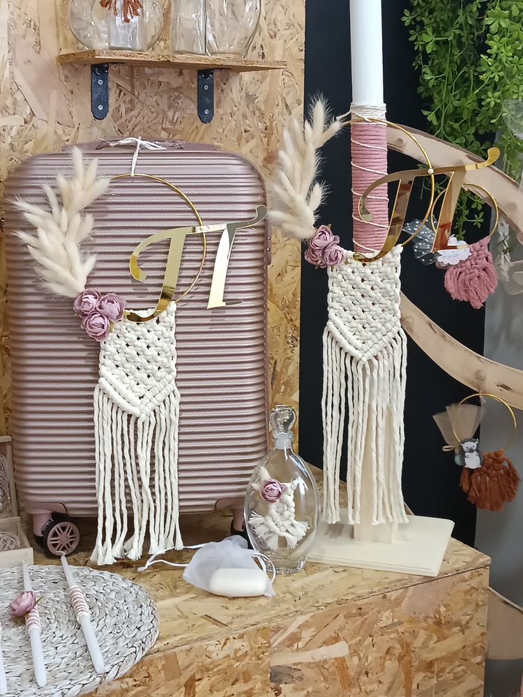Boho μακραμέ με αποξηραμένα λουλούδια Βαπτιστικό πακέτο